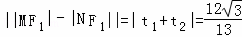 (2)经过点F1,且与直线AF2垂直的直线l交此圆锥曲线于M、N两点,求||MF1|﹣|NF1||的值.