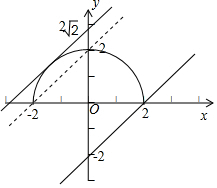 分析 由题意可得直线y=x+m与半圆y=$\sqrt{4-{x}^{2}}$只有一个交点,数形结合可得实数m的取值范围.