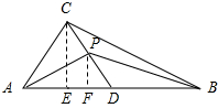 由P点作斜边AB的垂线PF交AB于F(即△PAB边AB上的高)