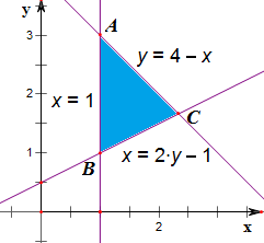 x=1,y=4-x,x=2y-1两两联立解得,