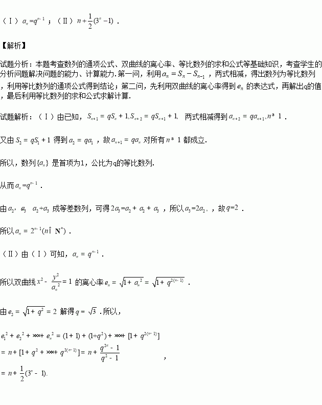 已知数列{an}的首项为1, Sn为数列{an}的前n项和,Sn+1=Sn+1,其中q﹥0,n∈N+
