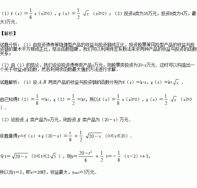类产品的收益与投资额的算术平方根成正比.已知投资1万元时