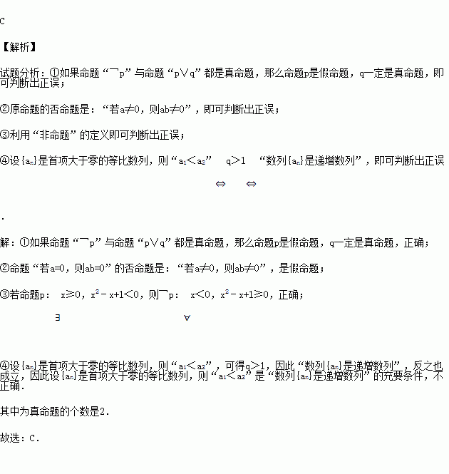 ①如果命题“¬p”与命题“p∨q”都是真命题,那么命题q一定是真命题;