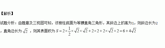 《九章算术》中,将底面是直角形的直三棱柱称之为“堑堵”,已知某“堑堵”的三视图如图所示,俯视图中虚线平分矩形的面积,则该“堑堵”的表面积为( )