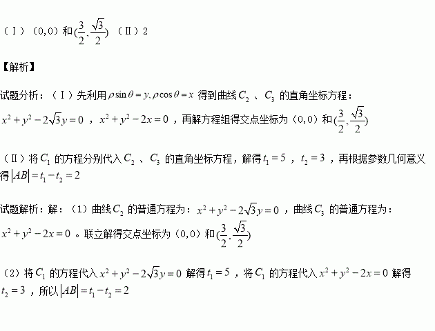 (Ⅱ)若C2与C1相交于点A,C3与C1相交于点B,求