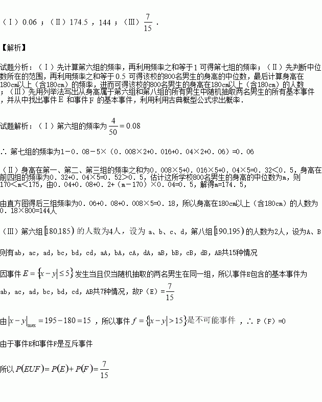 £¨¢ò£©¹À¼Æ¸ÃУµÄ800ÃûÄÐÉúµÄÉí¸ßµÄÖÐλÊýÒÔ¼°Éí¸ßÔÚ180cmÒÔÉÏ£¨º¬180cm£©µÄÈËÊý£»
