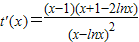 当x∈[1,e]时,x-1≥0,lnx≤1,x+1-2lnx>0,从而t′(x)≥0,