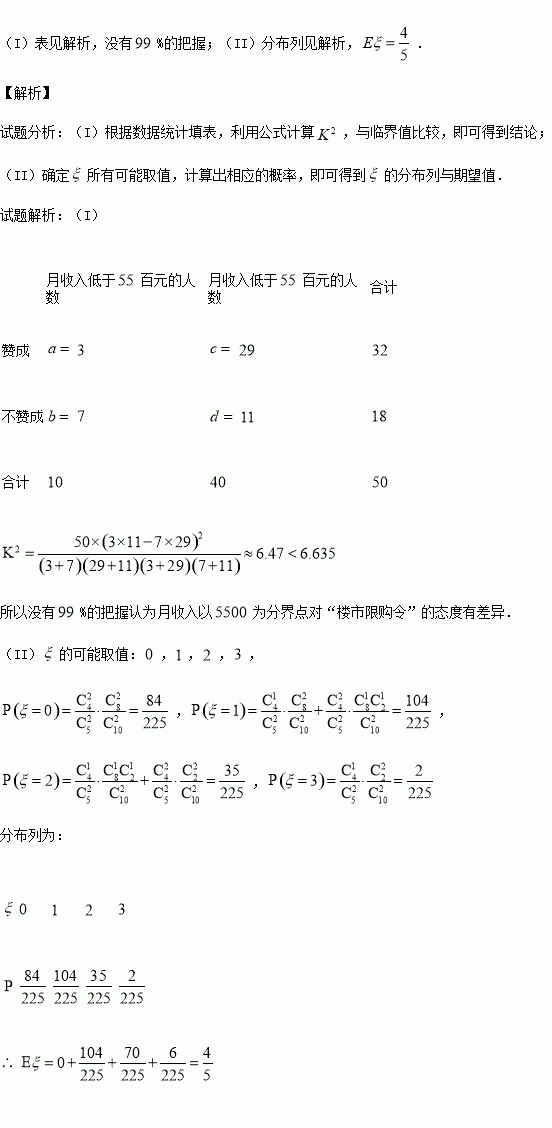 人,他们月收入的频数分布及对“楼市限购令”赞成人数如下表.
