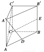 (本小题满分10分)直三棱柱ABC—A′B′C′中,AC=BC=AA′,∠ACB=90°,D、E分别为AB、BB′的中点.