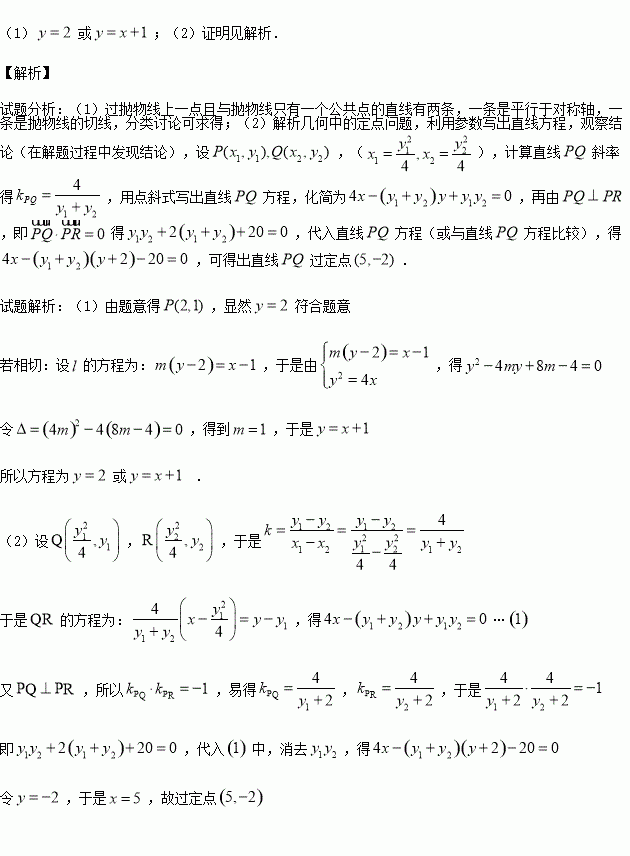 ,P为C上一点且纵坐标为2,Q,R是C上的两个动点,且