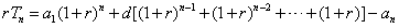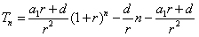 某国采用养老储备金制度.公民在就业的第一年就交纳养老储备金,数目为a1,以后每年交纳的数目均比上一年增加d(d>0),因此,历年所交纳的储务金数目a1,a2,…是一个公差为d的等差数列,与此同时,国家给予优惠的计息政策,不仅采用固定利率,而且计算复利.这就是说,如果固定年利率为r(r>0),那么,在第n年末,第一年所交纳的储备金就变为a1(1+r)a-1,第二年所交纳的储备金就变为a2(1+r)a-2,……,以Tn表示到第n年末所累计的储备金总额.