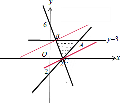 联立$\left\{\begin{array}{l}{3x+y-6=0}\\{x-y-2=0}\end{array}\right.$,得C(2,0),