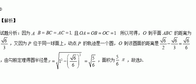 的三棱锥P-ABC的顶点P位于同一球面上,则动点P的轨迹所围成的平面区域的面积是( )