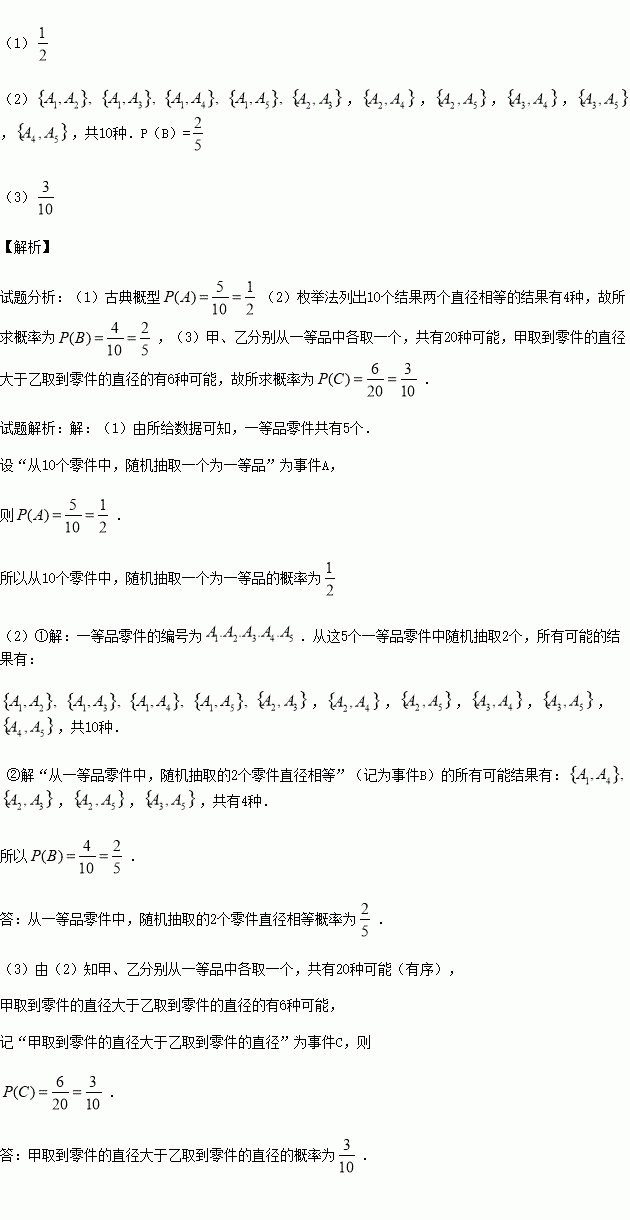 (3)若甲、乙分别从一等品中各取一个,求甲取到零件的直径大于乙取到零件的直径的概率.