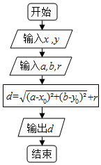 第三步,计算d=$\sqrt{(a-{x}_{0})^{2}+(b-{y}_{0})^{2}}+r$.