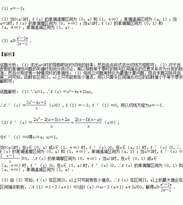 (3)若f(x)≤0在区间[1,e]上恒成立,求实数a的取值范围.