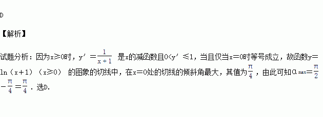 将函数y=ln(x+1)(x≥0) 的图象绕坐标原点逆时针方向旋转角θ(θ∈(0,α]),得到曲线C,若对于每一个旋转角θ,曲线C都仍然是一个函数的图象,则α的最大值为