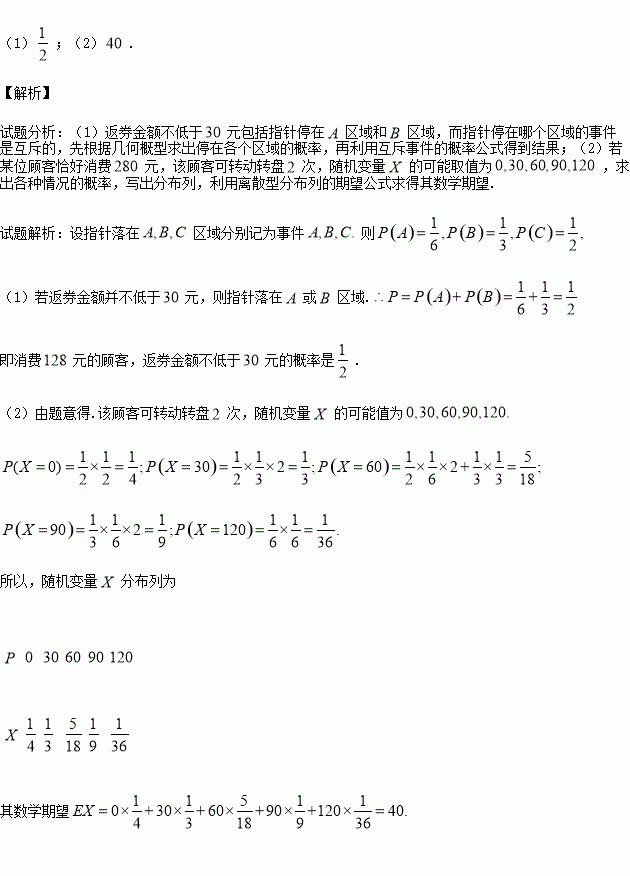 元可转动如图所示的转盘一次,并获得相应金额的返券,假定指针等可能地停在仼一位置,若指针停在
