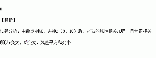 如图,5个(x,y)数据,去掉D(3,10)后,下列说法错误的是( ).