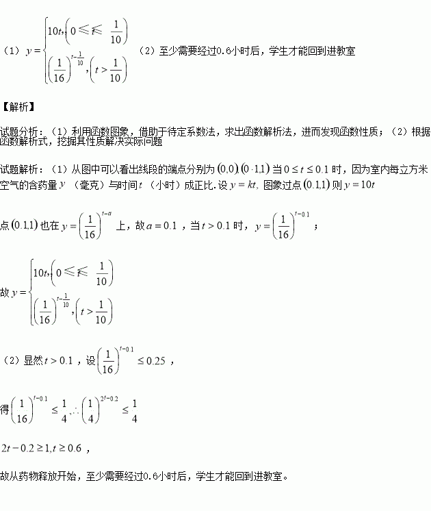 £¨2£©¾Ý²â¶¨£¬µ±¿ÕÆøÖÐÿÁ¢·½Ã×¿ÕÆøµÄº¬Ò©Á¿½µµ½0£®25ºÁ¿ËÒÔÏÂʱ£¬Ñ§Éú·½¿É½ø½ÌÊÒ£¬ÄÇ´ÓÒ©ÎïÊÍ·Å¿ªÊ¼£¬ÖÁÉÙÐèÒª¾¹ý¶àÉÙСʱºó£¬Ñ§Éú²ÅÄܻص½½ø½ÌÊÒ£¿