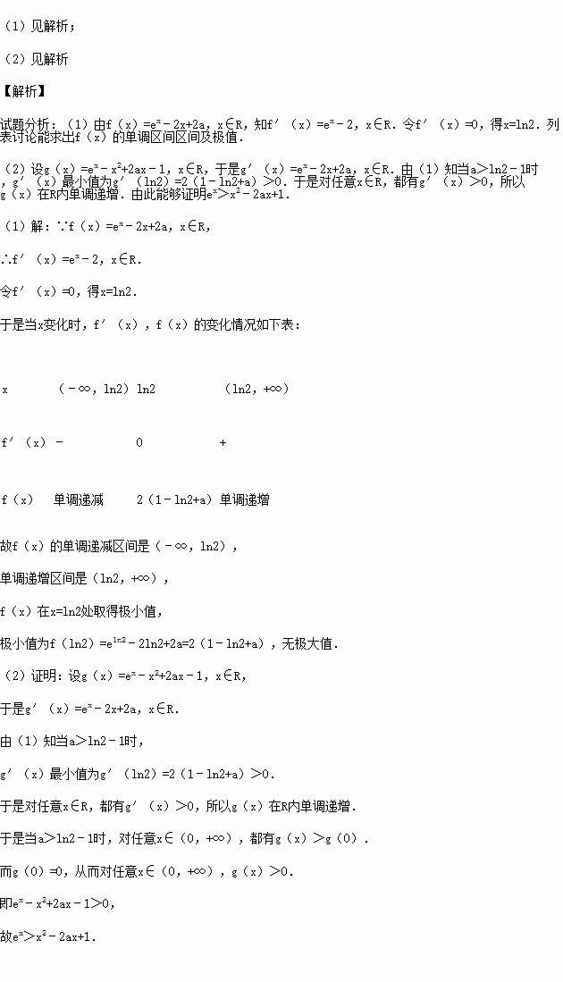 (2015•河南二模)设a为实数,函数f(x)=ex﹣2x+2a,x∈R.