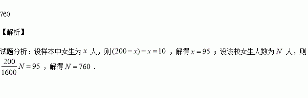 某校对全校男女学生共1600名进行健康调查,选用分层抽样法抽取一个容量为200的样本,已知女生抽了95人,则该校的女生人数应是________人.
