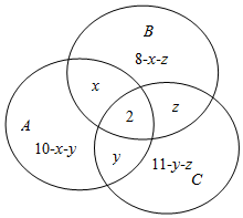 ∵card(∪)=24,∴(10-x-y)+x+y+2+(8-x-z)+z+(11-y-z)=24,