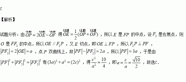 的切线,切点为E,延长FE交双曲线右支于点P,若