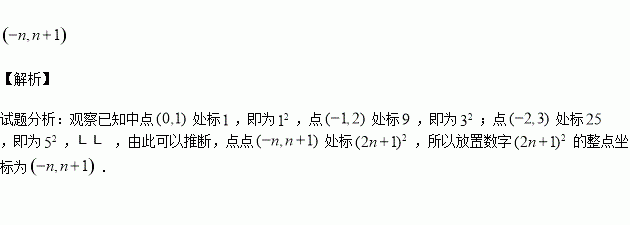 如图,将自然数按如下规则“放置”在平面直角坐标系中,使其满足条件:(1)每个自然数“放置”在一个“整点”(横纵坐标均为整数的点)上;(2)0在原点,1在