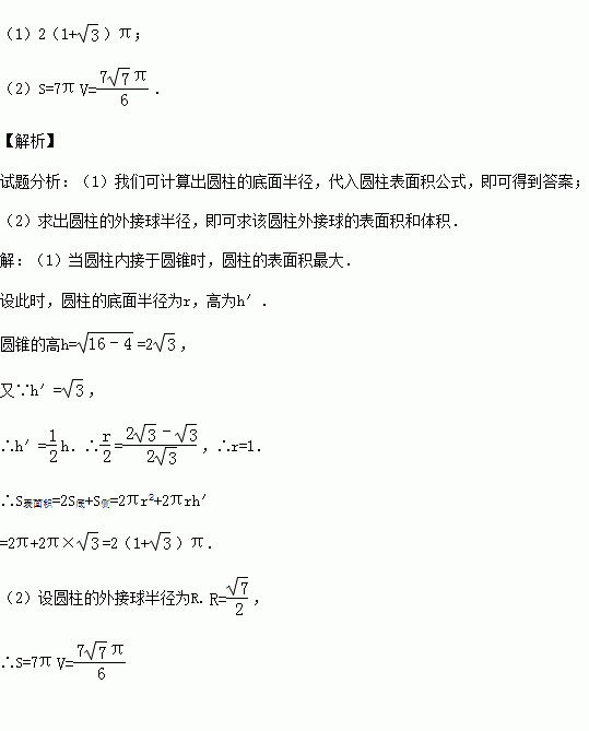 (2)在(1)的条件下,求该圆柱外接球的表面积和体积.
