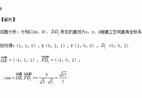 在棱长为2的正方体ABCD﹣A1B1C1D1中,O是底面ABCD的中心,E、F分别是CC1、AD的中点,那么异面直线OE和FD1所成的角的余弦值等于( )