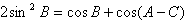 (2)在△ABC中,若f(C)=1,且2sin2B=cosB+cos(A-C),求sinA的值。