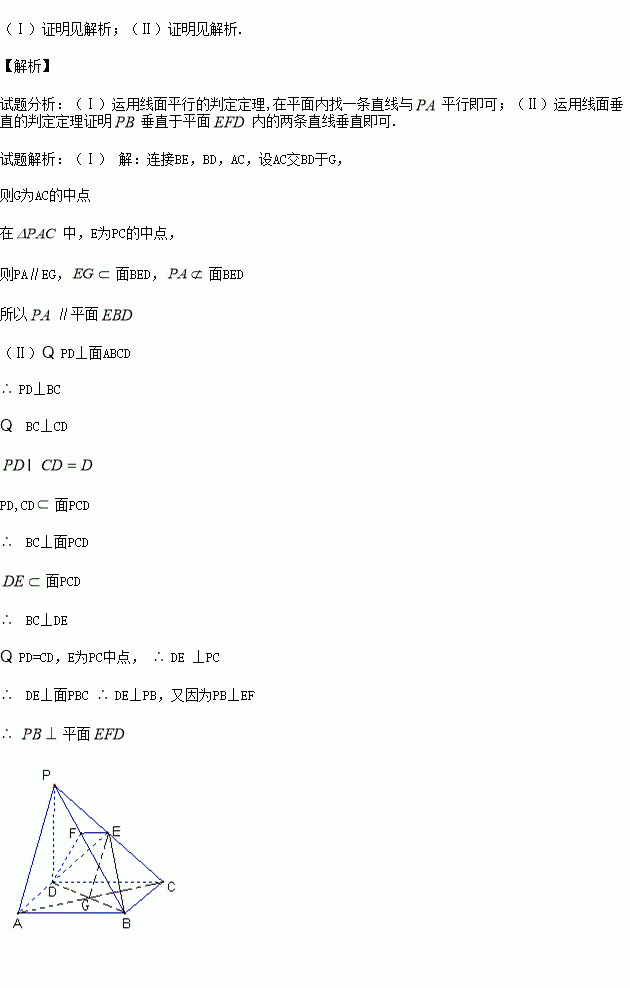 底面ABCD,PD=DC=1,点E是PC的中点,作EF