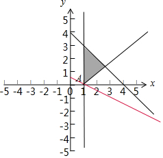 解答 解:实数x,y满足约束条件$\left\{\begin{array}{l}{x≥1,}&{\;}\\{x+y≤4,}&{\;}\\{x+by-1≤0}&{\;}\end{array}\right.$的可行域如图:![]()