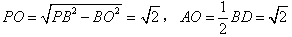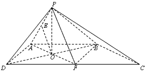 | (Ⅰ)证明:设F为DC的中点,连接BF, 则DF=AB, ∵AB⊥AD,AB=AD,AB∥DC, ∴四边形ABFD为正方形, ∵O为BD的中点, ∴O为AF,BD的交点, ∵PD=PB=2,PO⊥BD, ∵ ∴ 在三角形PAO中, ∴PO⊥AO, ∵ ∴PO⊥平面ABCD; |