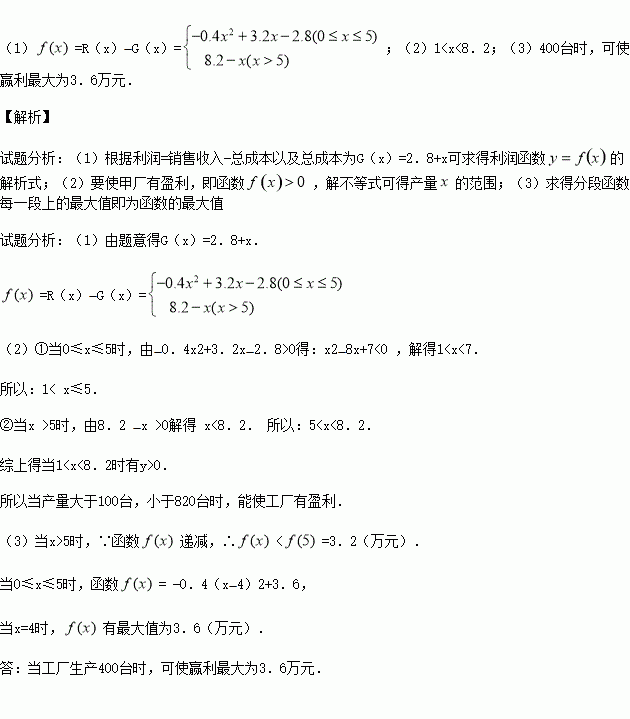 (万元),其中固定成本为2.8万元,并且每生产1百台的生产成本为1万元(总成本=固定成本+生产成本),销售收入