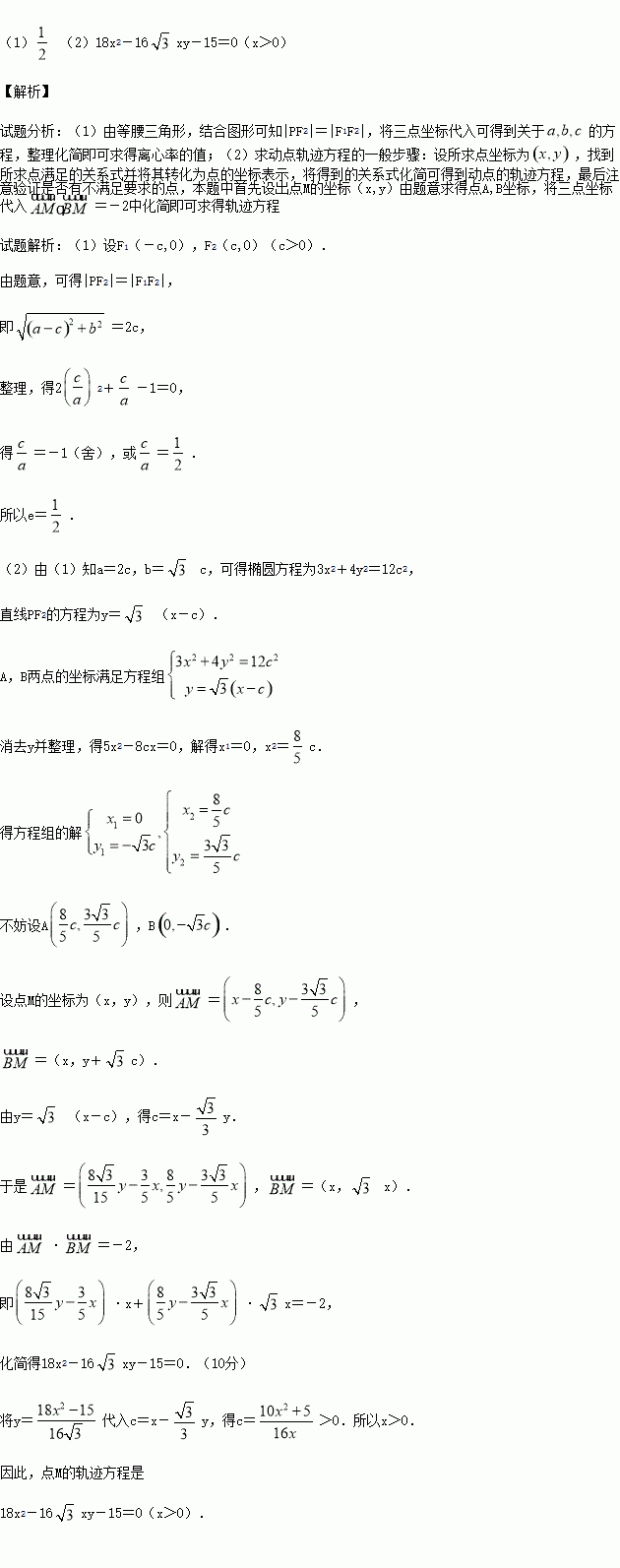 (2)设直线PF2与椭圆相交于A,B两点,M是直线PF2上的点,满足
