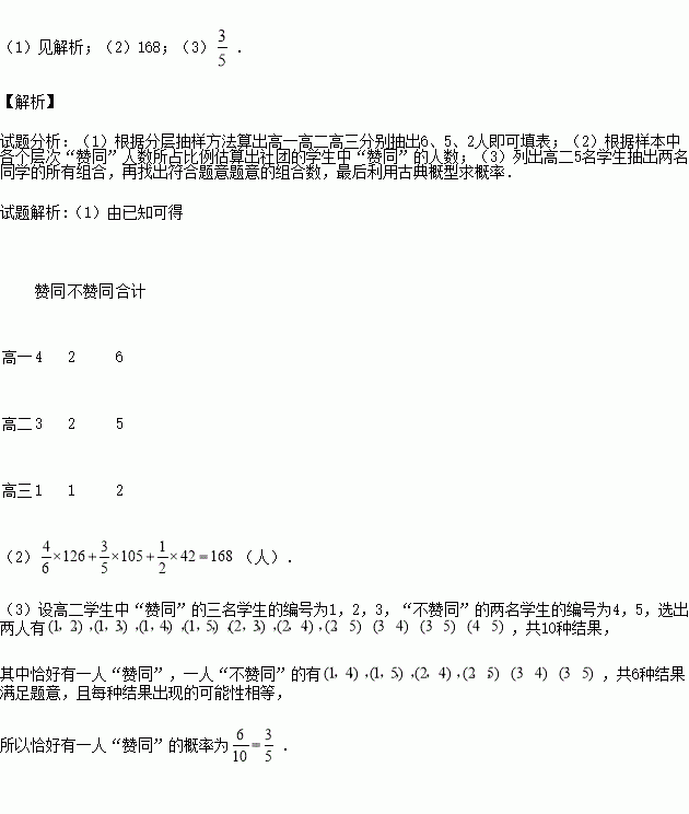 某校联合社团有高一学生126人,高二学生105人,高三学生42人,现