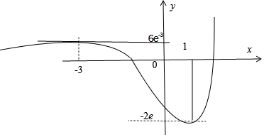 解答 解:f′(x)=(x-1)(x+3)ex,∴f(x)在(-∞,-3)和(1,+∞)上单增,(-3,1)上单减,又当x→-∞时f(x)→0,x→+∞时f(x)→+∞,故f(x)的图象大致为:![]()