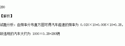 超速行驶已成为马路上最大杀手之一,已知某中段属于限速路段,规定通过该路段的汽车时速不超过80km/h,否则视为违规.某天,有1000辆汽车经过了该路段,经过雷达测速得到这些汽车运行时速的频率分布直方图,则违规的汽车大约为 .辆.