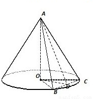 【答案】分析:设出BC中点为D,做出辅助线连接AD,OD根据OB=OC=2,∠BOC=60°,得到△OBC为等边三角形,表示出三角形的面积,得到AD的长度,进而得到圆锥的高,求出圆锥的体积.