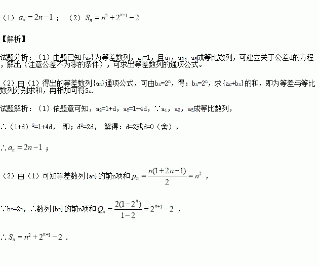 (2)设bn=2n,求数列{an+bn}的前n项和Sn.