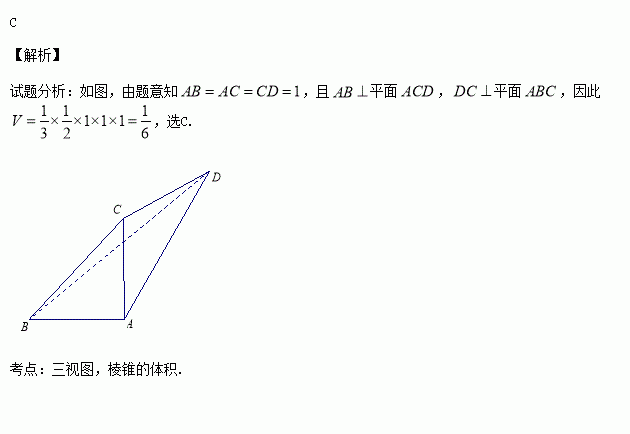 一个四面体如图,若该四面体的正视图(主视图)、侧视图(左视图)和俯视图都是直角边长为1的等腰直角三角形,则它的体积
