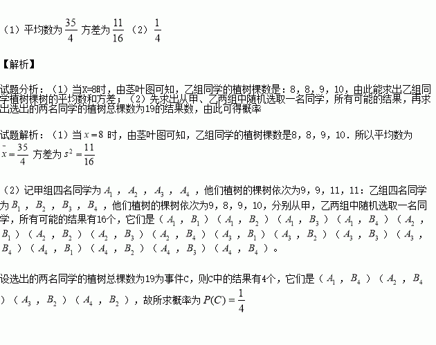 (2)如果X=9,分别从甲,乙两组中随机选取一名同学,求这两名同学的植树总棵树为19的概率.