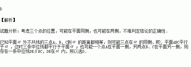 已知平面α外不共线的三点A、B、C到平面α的距离相等,则正确的结论是( )