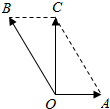 解:如图所示,$\overrightarrow{OA}$表示水流速度,$\overrightarrow{OB}$表示船在静水中的速度,
