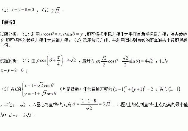 (2)求圆A上的点到直线n上点距离的最小值.