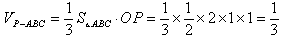 ∴OP为三棱锥P-ABC的高,且OP=1,
