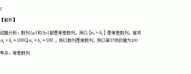 设数列{an}和{bn}都是等差数列,且a1=25,b1=75,a2+b2=100,那么由an+bn所组成的数列的第37项的值为( )