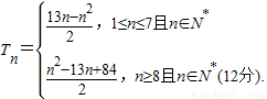 ∴当1≤n≤7时,b